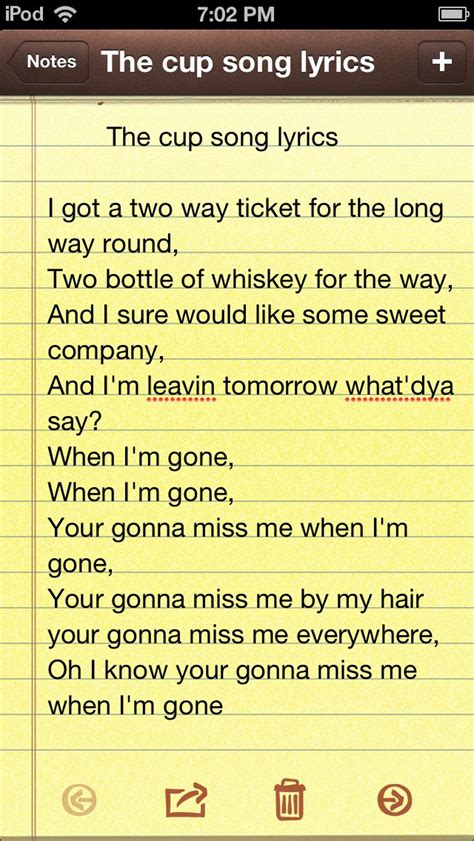 Song Lyrics Cup Song When I M Gone Anna Kendrick Wattpad